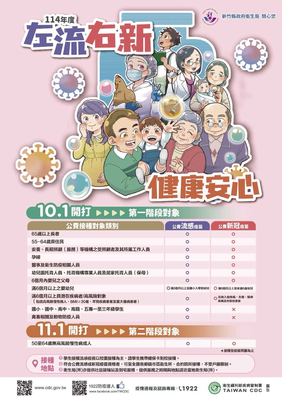 114年10/1(星期三)起 公費流感疫苗及新冠疫苗開打囉!